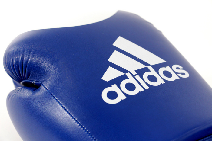 In partea din fata a manusii are un punct mare alb „tinta”, logo adidas pe partea din fata a manusii iar la manseta cele trei linii specifice adidas in diagonala.